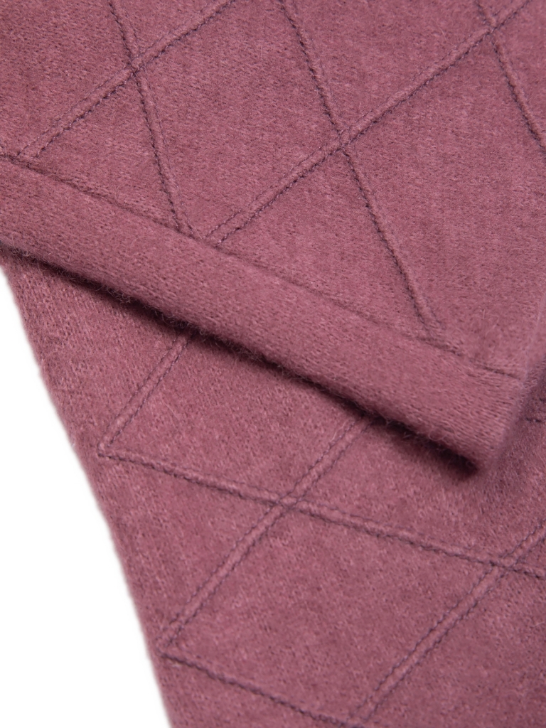 Перчатки выполнены из трикотажной шерсти. Состав трикотажа: 80% шерсть, 20% нейлон. Без подкладки. Отделка - декоративные строчки ромбами на лицевой стороне. Длина манжеты от нижней точки большого пальца до края перчатки 5 см. Длина пальцев - средняя.