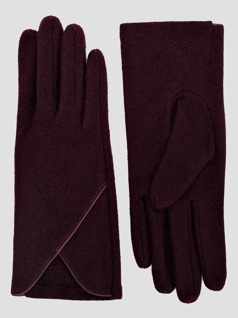 Модель без подкладки. Отделка - декоративный кант на манжете, расходящийся от линии разреза на лицевой стороне перчатки, выполненный из экокожи. Длина манжеты от нижней точки большого пальца до края перчатки - 6,5 см. Длина пальцев - средняя.