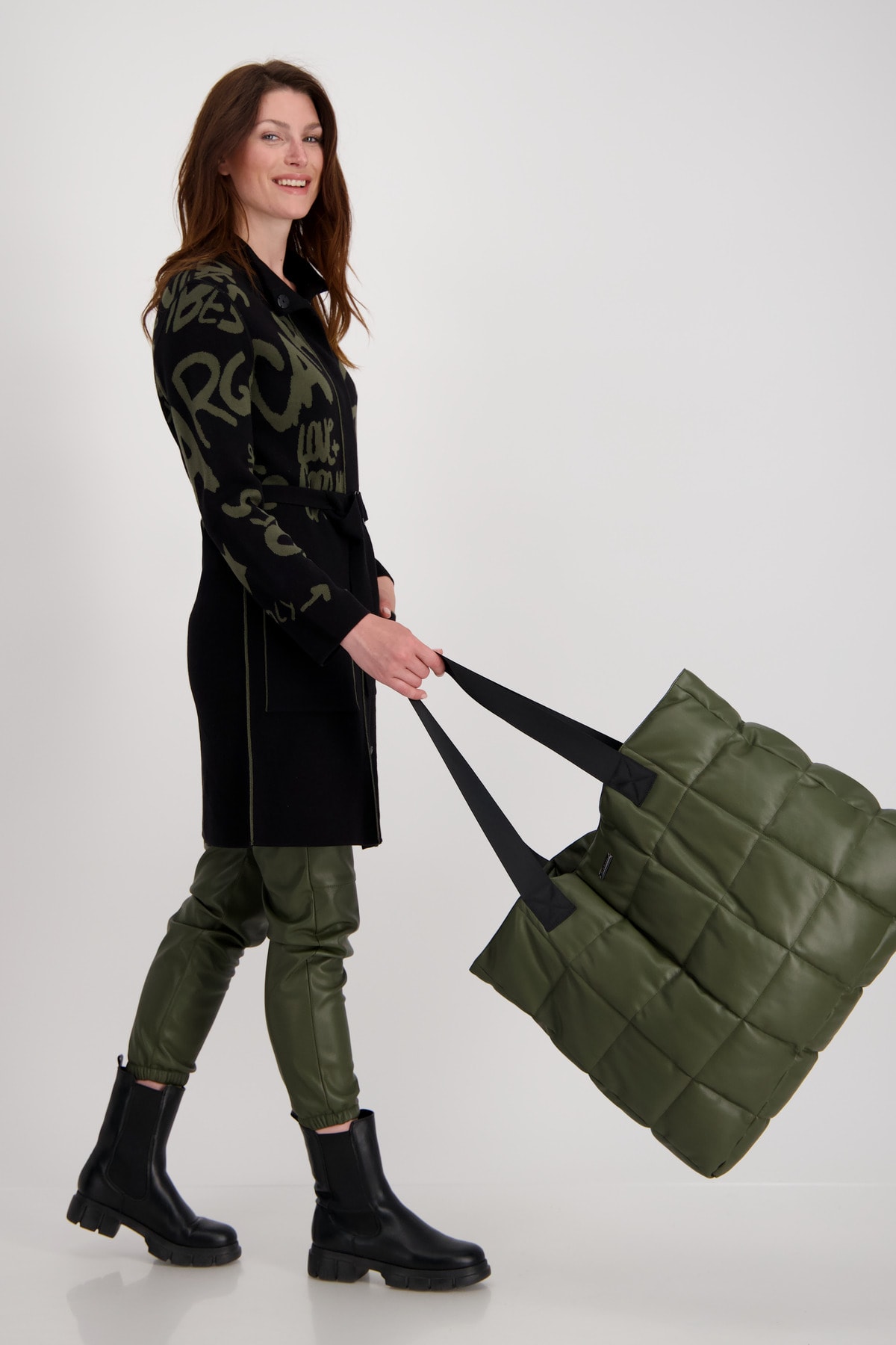 Модная стеганая прострочка этой сумки монари и две широкие ручки делают эту модель по-настоящему привлекательной. Внутри сумка имеет еще одно отделение, которое закрывается на молнию. Размер сумки 44 см в высоту и 55 см в ширину.