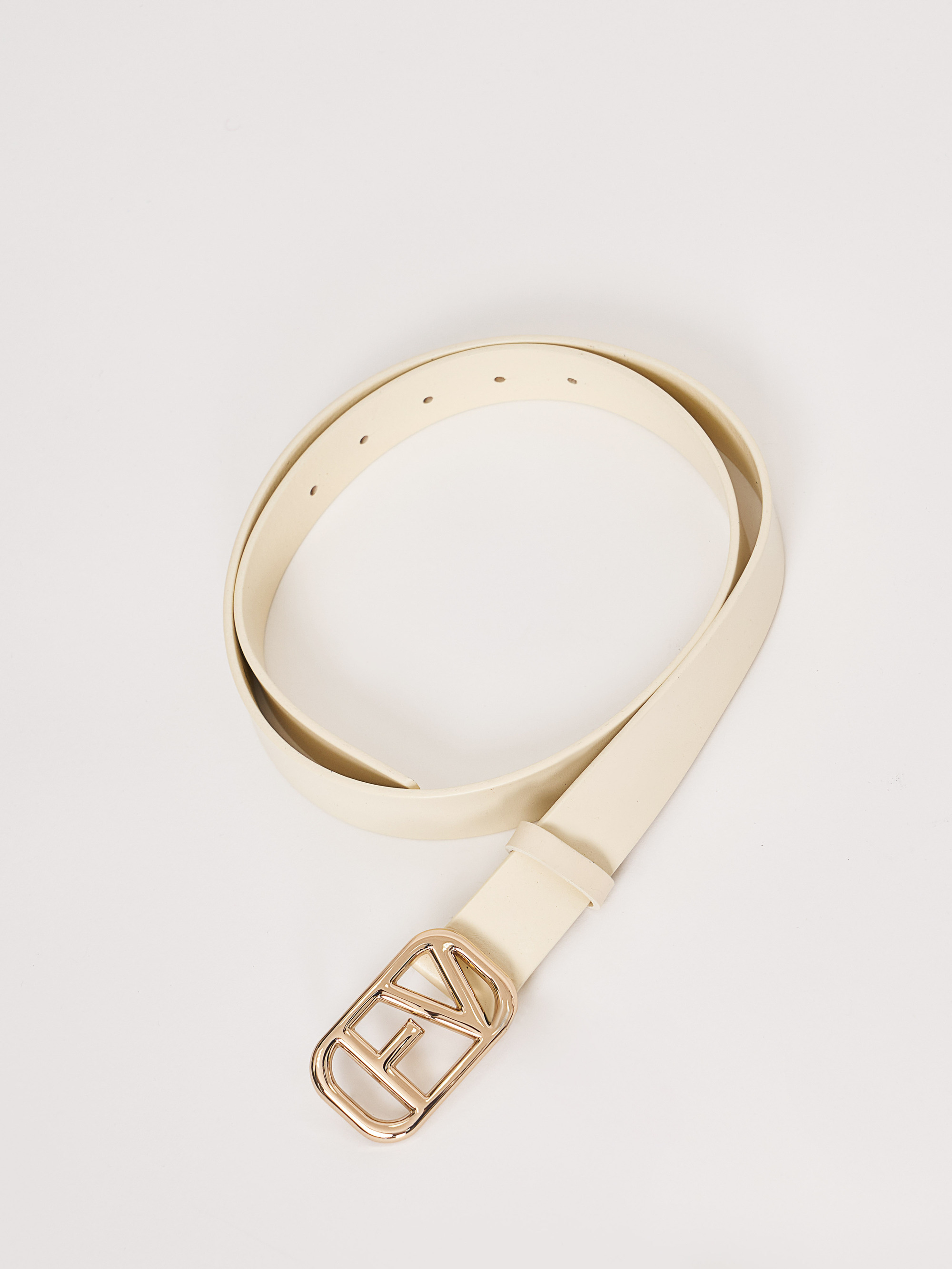 Классический ремень из 100% кожи с прямоугольной пряжкой с логотипом. Представлен в белом и черном цветах.