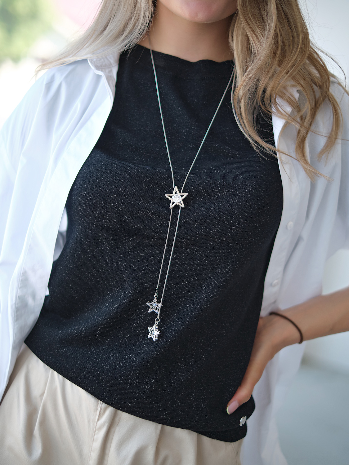 Украшение-подвеска в форме звезд. Изделие выполнено из комбинированных материалов с использованием горного хрусталя.