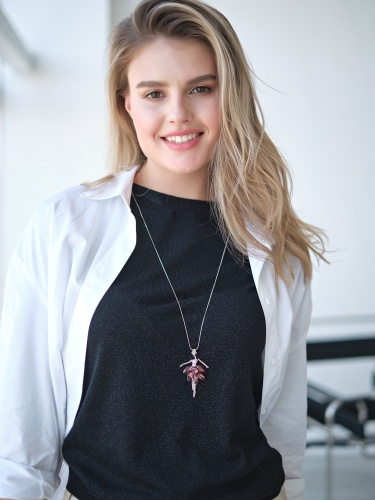 Украшение-подвеска создает изящный и женственный образ. Изделие выполнено из комбинированных материалов с использованием вставок горного хрусталя.