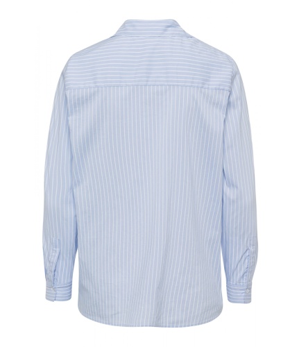 Повседневная оверсайз рубашка в широкую полоску. Втачной рукав полной длины с манжетой на пуговице. Рубашечный воротник, удлиненная спинка.