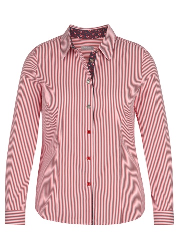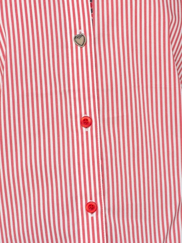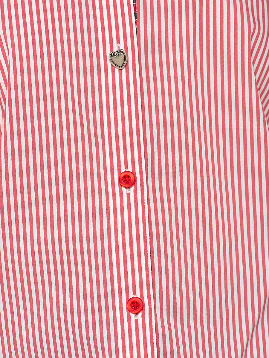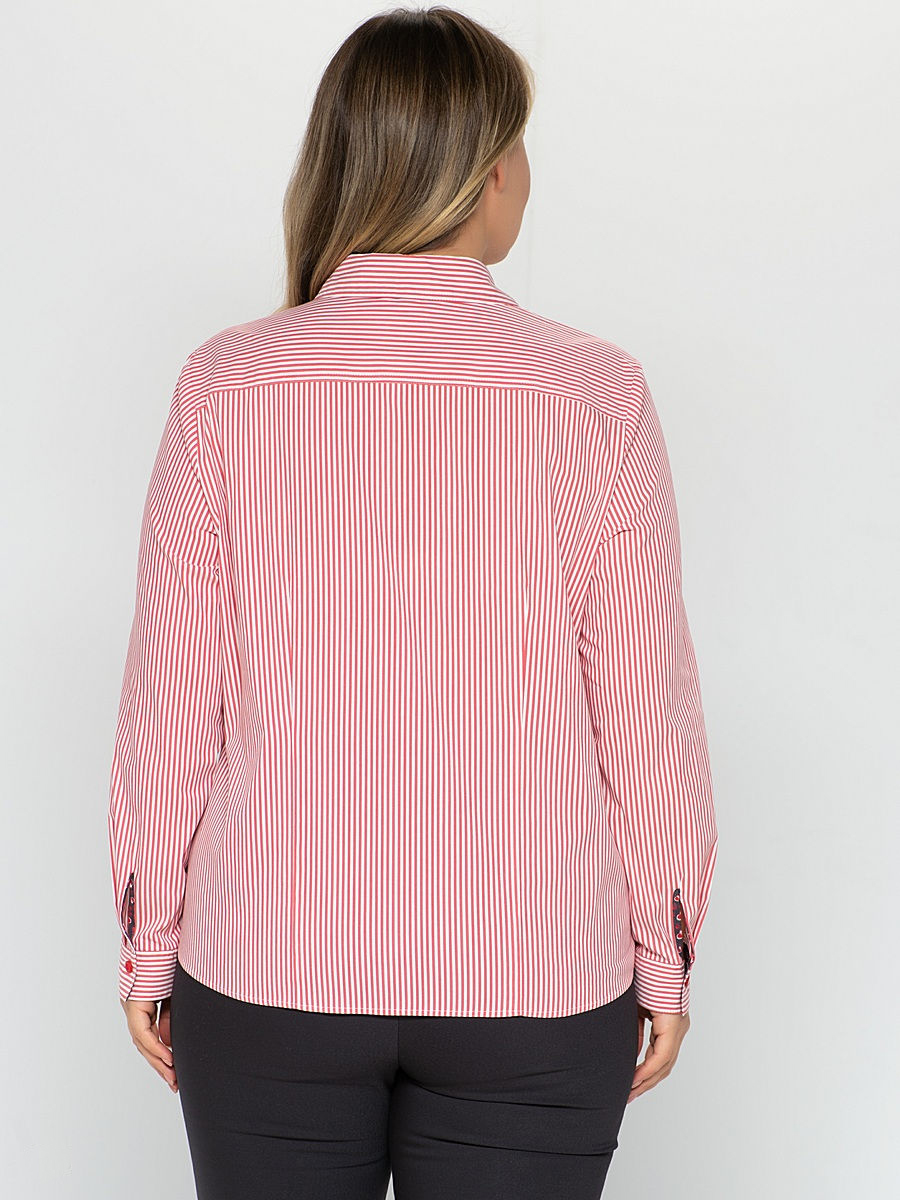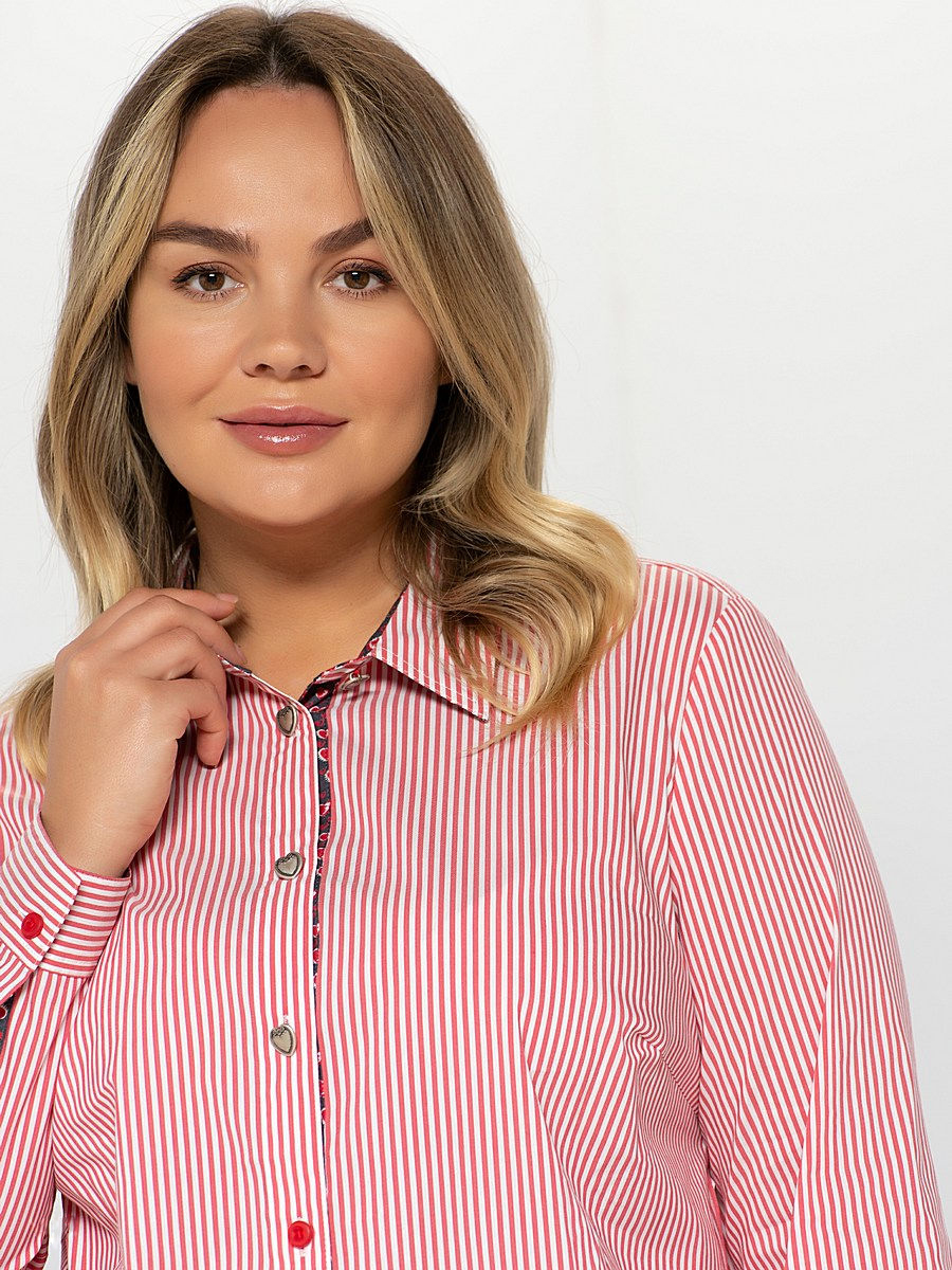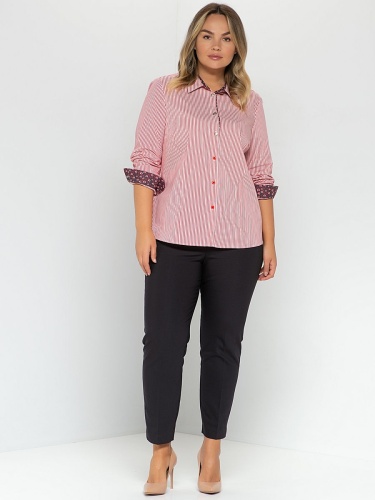 Полосатый дизайн - поистине вечная классика! Блузка-рубашка слегка приталенного силуэта. Рубашечный воротник, втачные рукава полной длины с манжетами. Пуговицы разной формы создают непринужденный образ. Элегантный акцент блузки - контрастная подкладка на воротнике и пуговичной планке. Приятный к телу материал из хлопковой смеси обеспечивает комфорт.