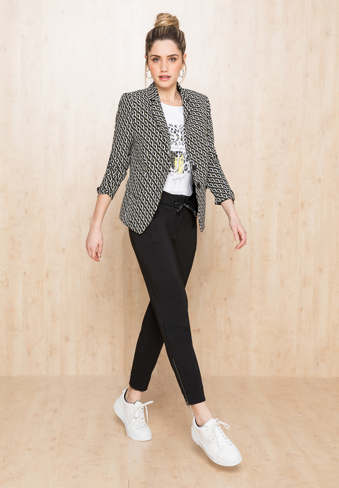 Эти брюки предлагают вам комфорт, в который можно влюбиться! Эластичный компонент делает их удобными в носке, а слегка мерцающая кулиска на поясе придает брюкам современный вид. Завершают дизайн серебряные молнии на карманах и по низу брюк. Будь то спортивный комплект одежды с рубашкой или женственный с белой блузкой, эти брюки - лучший модный компаньон!
