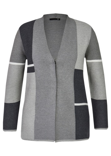 Расцветка колор-блок уверенно держится в трендах! Кардиган прямого покроя. V-образный вырез горловины, застежка-кнопка на груди, втачные рукава полной длины. Материал из хлопковой смеси приятен к телу и прост в уходе.