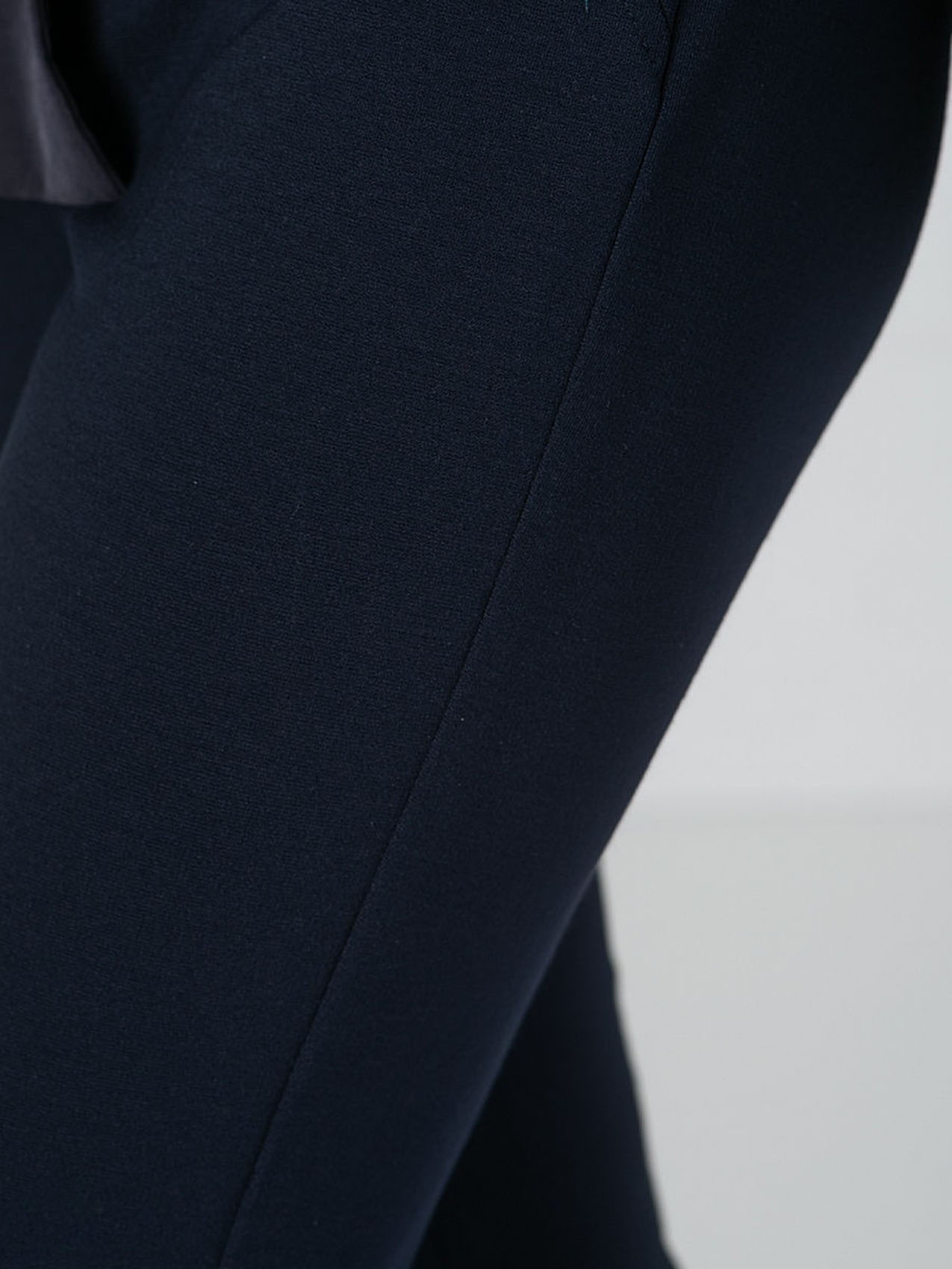 Темно-синие брюки без карманов. Смесь из вискозы и синтетических материалов приятна к телу и обеспечивает идеальную посадку. Силуэт slim подчеркивает линию ног. Брюки простого, сдержанного дизайна предполагают бесчисленные варианты комбинаций.
