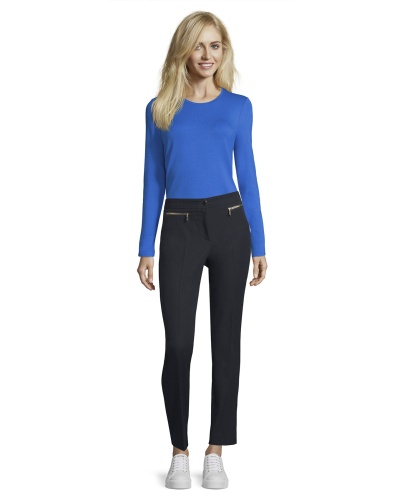 Брюки со стрелками - современная классика! Прямой покрой, средняя посадка. Материал из смеси полиэстера, вискозы и эластана приятен к телу. Эти брюки позволяют создать множество стильных образов с различными вариантами верха и обуви.