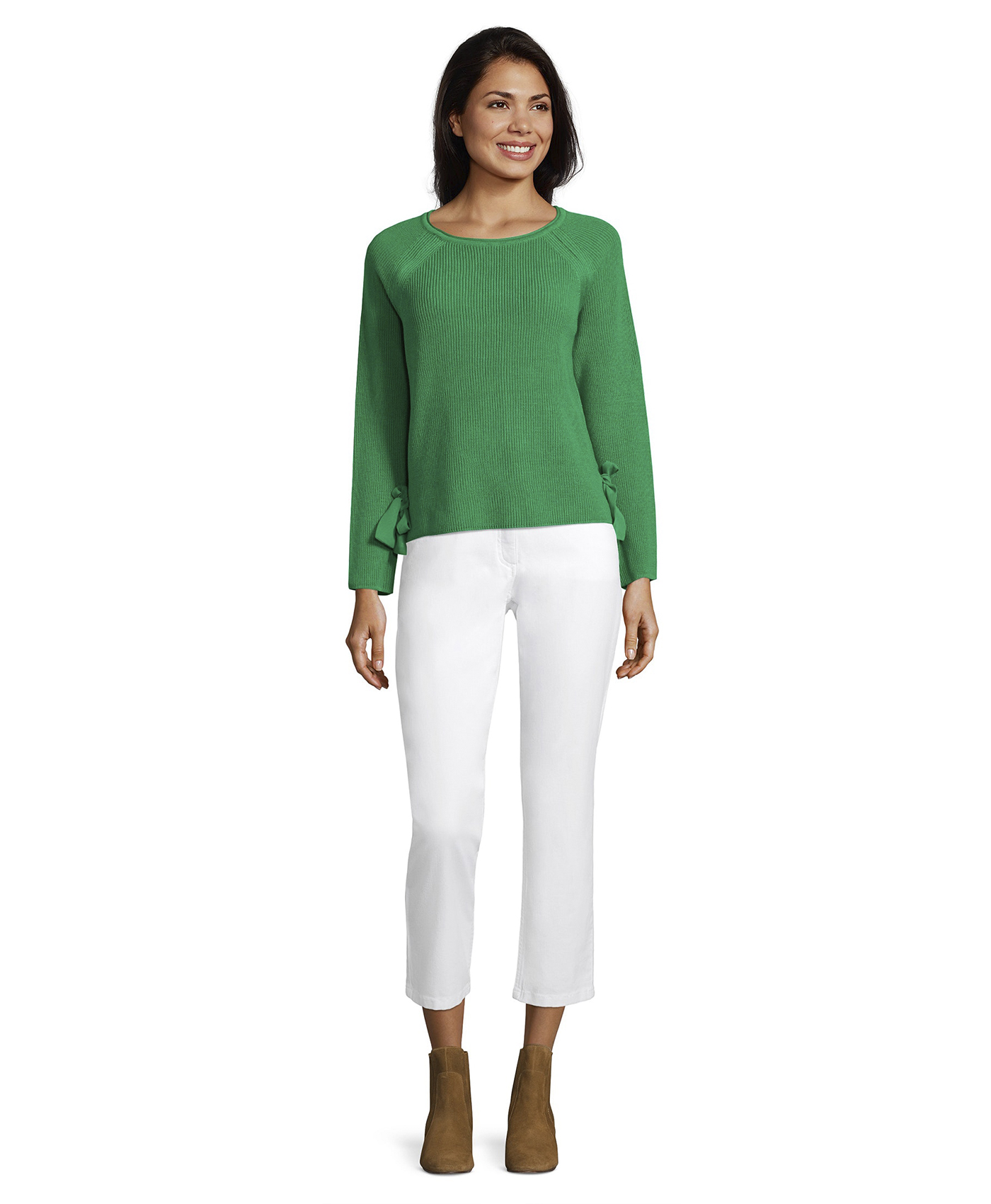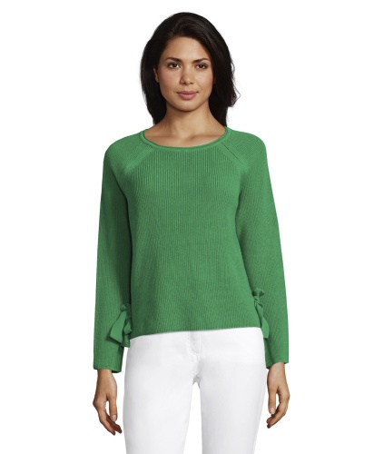 Слегка приталенный джемпер в трендовом цвете сезона должен быть в гардеробе каждой женщины. Круглый вырез горловины, длинные рукава реглан, декоративные ленты-завязки по бокам. Минималистичный дизайн джемпера позволяет комбинировать эту вещь практически с любым вариантом низа и обуви.