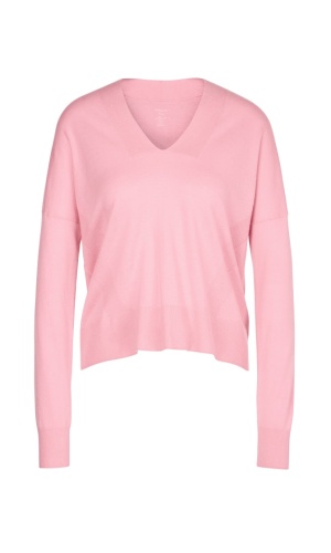 Джемпер прямого кроя. V-образный вырез горловины, втачной рукав полной длины со спущенным плечом.