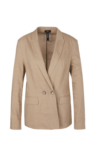Жакет прямого кроя. Английский воротник, застежка на пуговицы, втачные рукава, декоративные клапаны спереди. Состав из смеси льна, вискозы и эластана приятен к телу и обеспечивает комфорт.