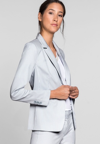 Стильный жакет Mandy станет изюминкой любого гардероба! Жакет на подкладке очень удобен в ношении благодаря высококачественной смеси вискозы и эластана. Модный образ создается за счет трендового принта в полоску и слегка приталенного силуэта. Модные детали - карманы, застежка на пуговицах и стильный воротник с лацканами - прекрасно дополнят наряд. • стильный жакет на подкладке с принтом в полоску • высококачественная смесь вискозы и эластана • воротник с лацканами, карманы, застежка на пуговице • слегка приталенный силуэт • длина около 64 см