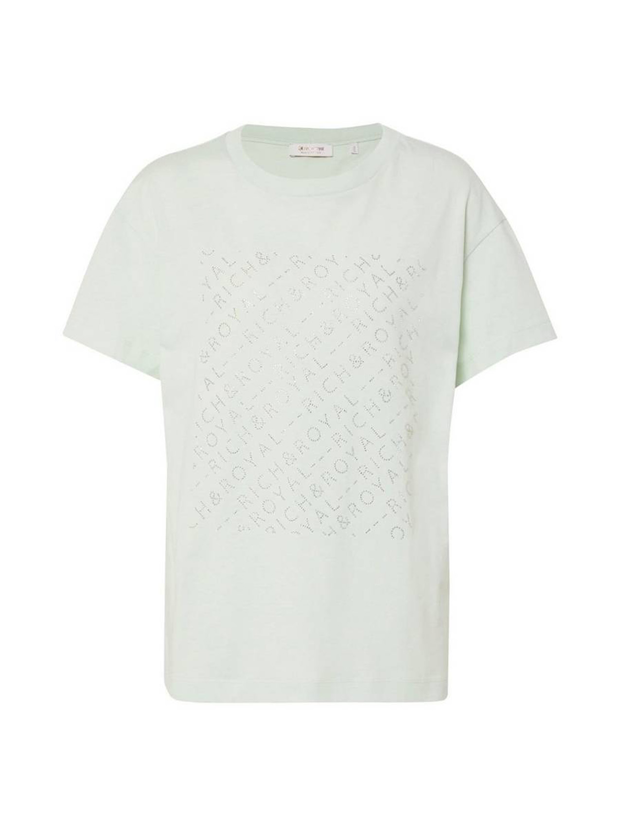 Эту футболку можно носить как с рваными джинсами, так и с классическим костюмом. Прямой покрой и хлопковый материал обеспечивают комфорт и создают непринужденный образ. Гламурные акценты - декор стразами на переде футболки.