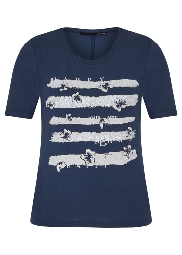 Футболка слегка приталенного силуэта. Креативный принт, пайетки. Приятный к телу материал из смеси хлопка и эластана.