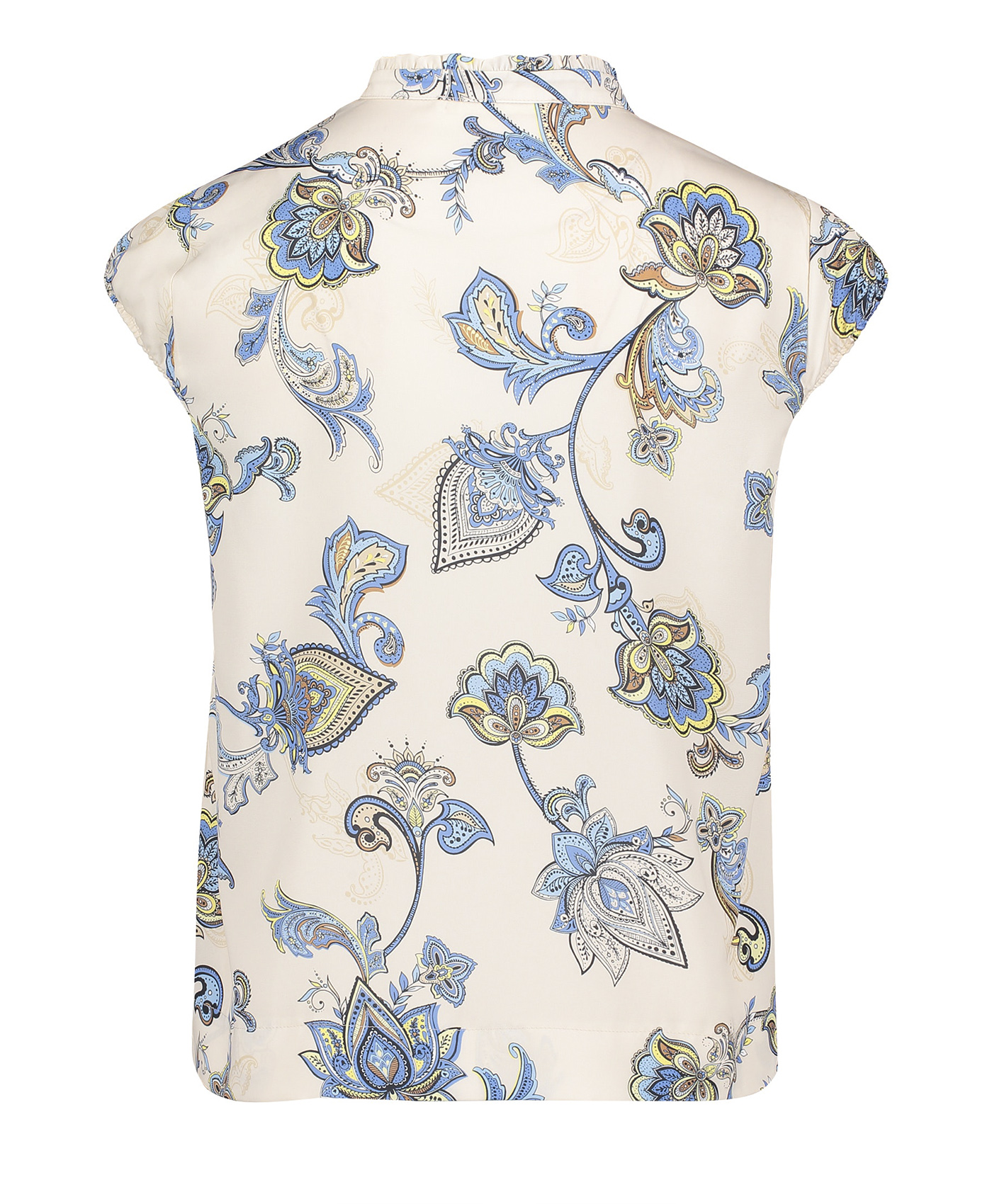 Блуза с цветочным принтом - дизайн на все времена! Прямой покрой, воротник-стойка в китайском стиле, короткие рукава. Вискозный материал приятен к телу и обеспечивает максимальный комфорт. Эта блуза прекрасно смотрится как в брючном, так и в юбочном комплекте.