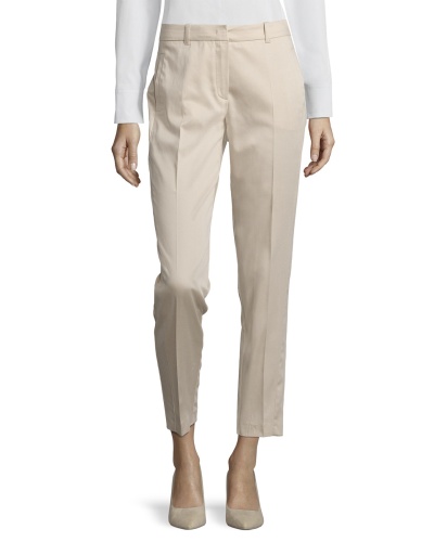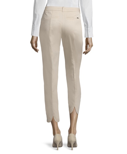Брюки прямого кроя со стрелками. Небольшие разрезы на задней части низа брючин. Укороченная длина брюк позволяет подчеркнуть модную обувь. Приятный к телу материал из хлопковой смеси. Эти брюки гарантируют трендовый образ в сочетании с любым верхом и обувью.