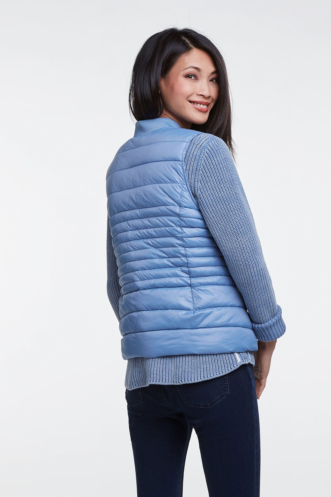 Великолепный стеганый жилет на синтепоне. Воротник-стойка, застежка-молния. Отличный выбор для прогулки в прохладную погоду!