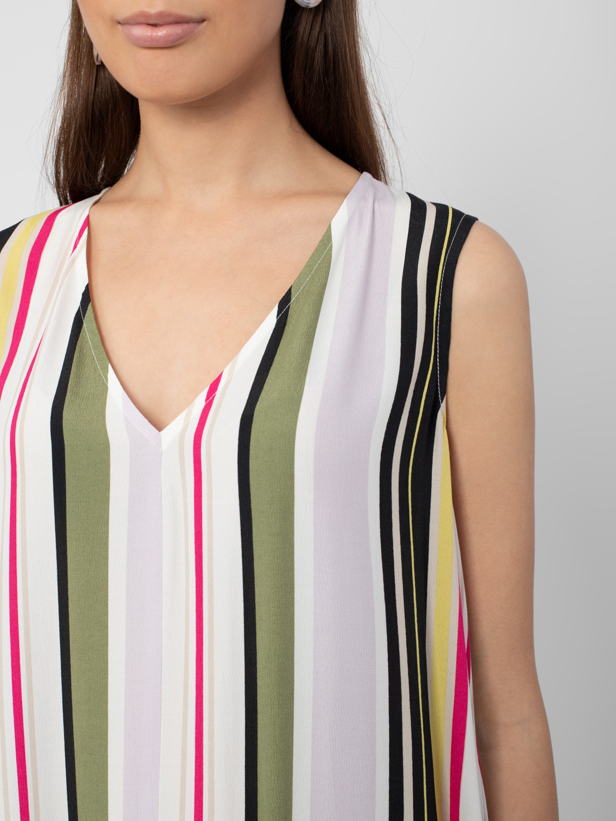 Платье из вискозы в принте полуприлегающего силуэта без рукавов с v-образным вырезом горловины.