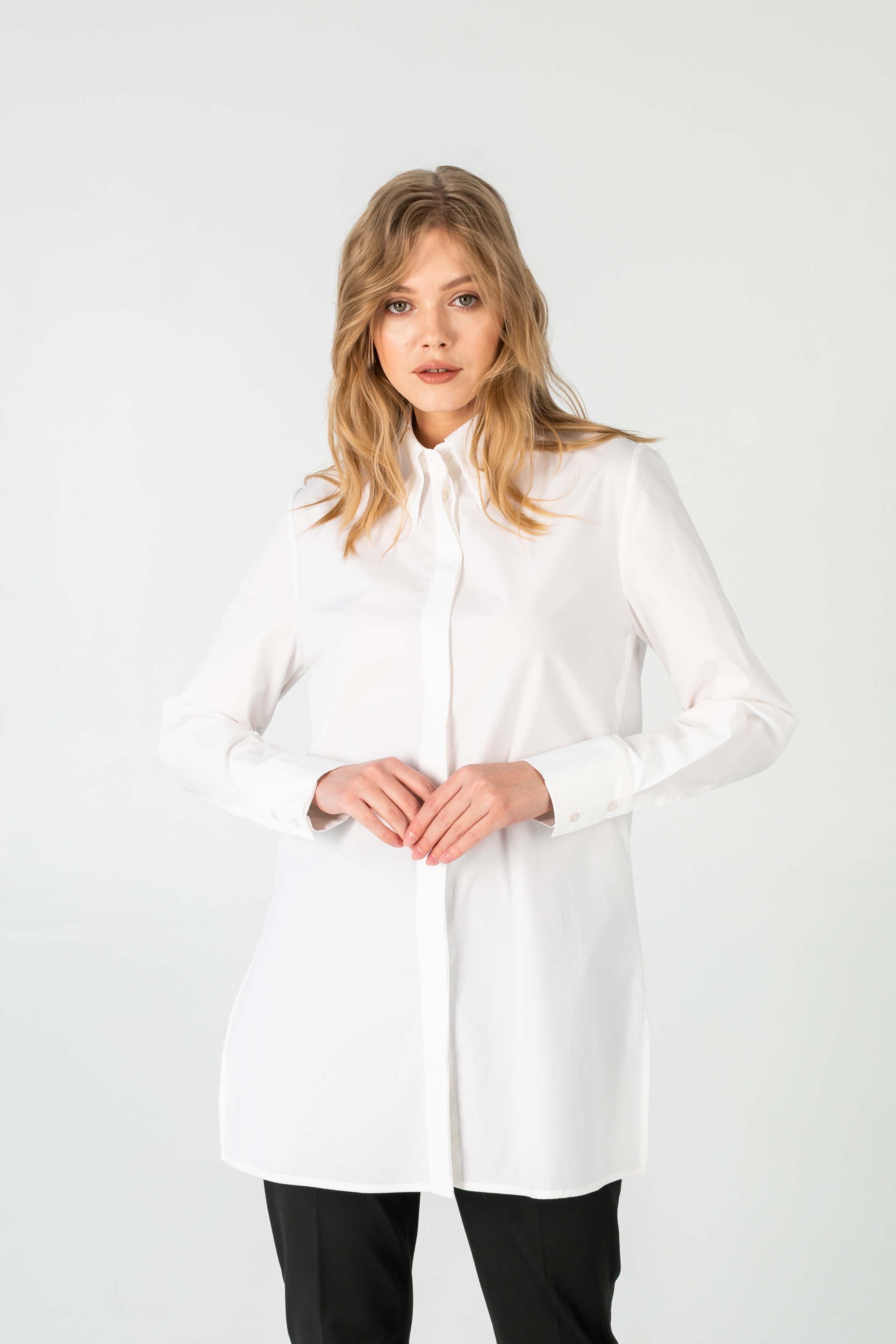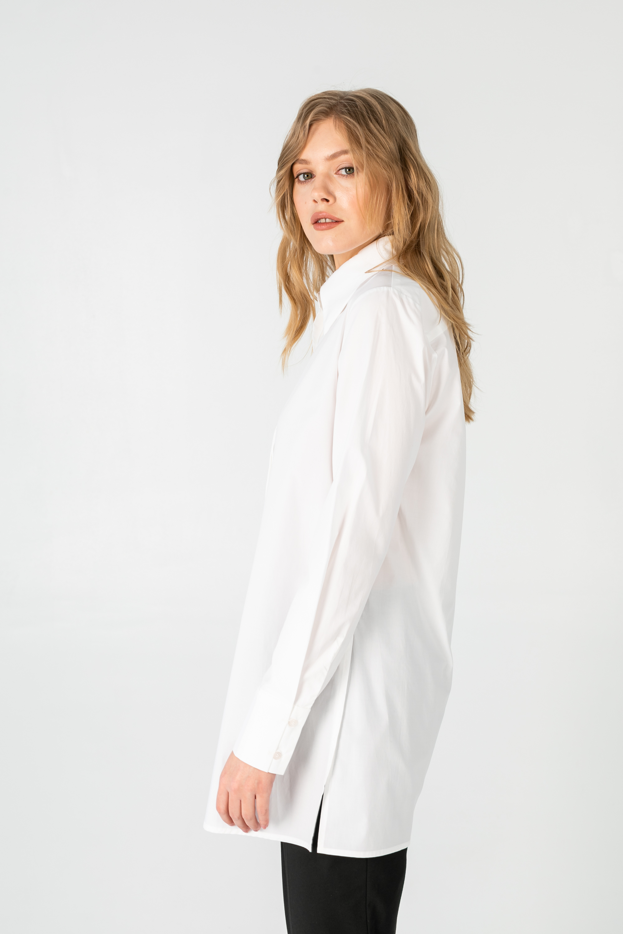 Классическая удлиненная оверсайз рубашка с защипом на спине.