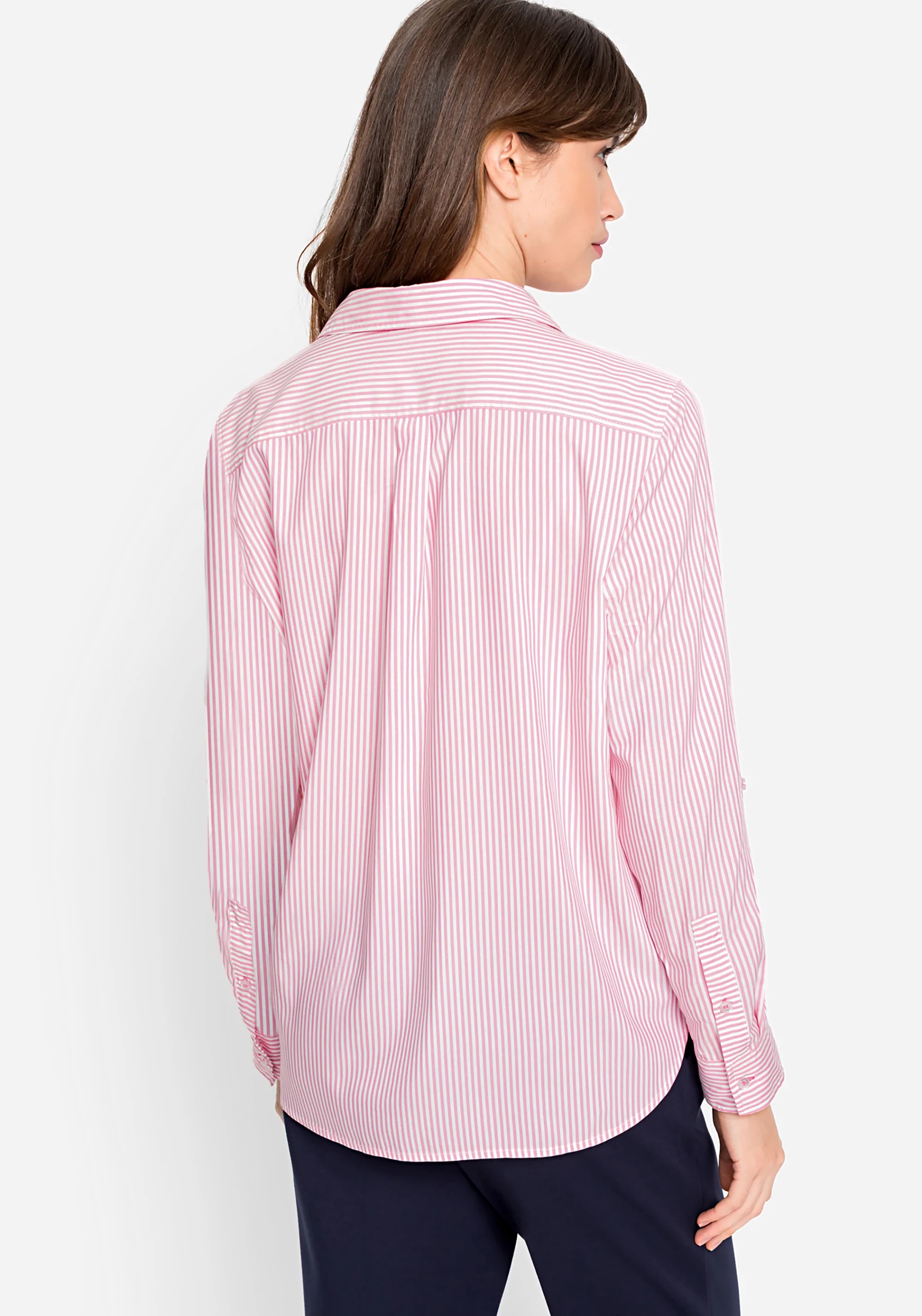 На сайте указаны Российские размеры. Классическая рубашка в полоску с двумя карманами спереди.