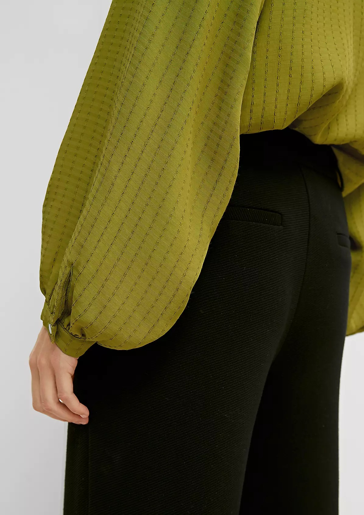 На сайте указаны российские размеры. Блузка из вискозы с узорчатой фактурой. Широкие рукава, длинные рукава, манжеты. Длина спины: 63 см в размере 42. Рост модели 177 см.