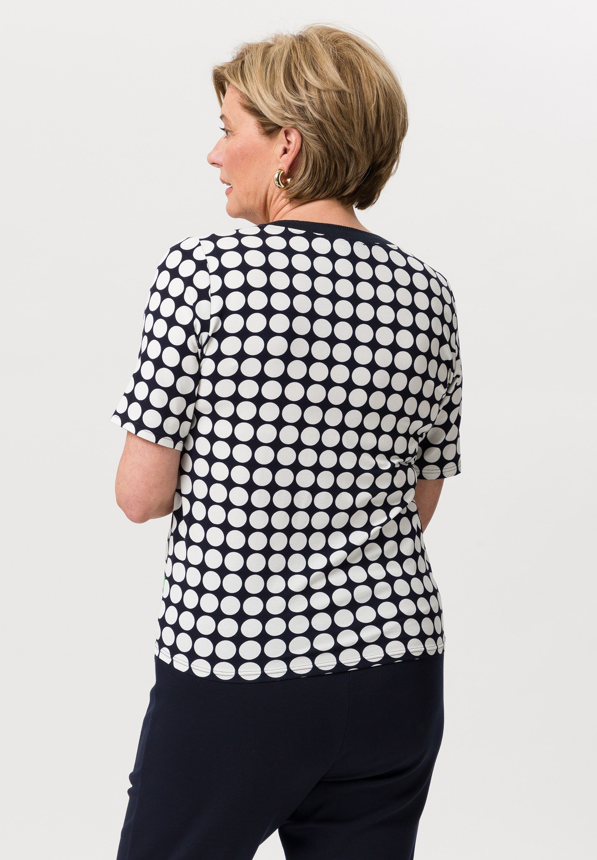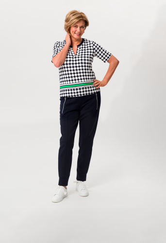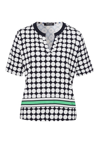 На сайте указаны российские размеры. Повседневная женская рубашка в очень привлекательном виде. Женственная круглая горловина удивляет трикотажной манжетой в тон. Полоса, напечатанная в цвете спереди, также модна и делает принт особенно шикарным.