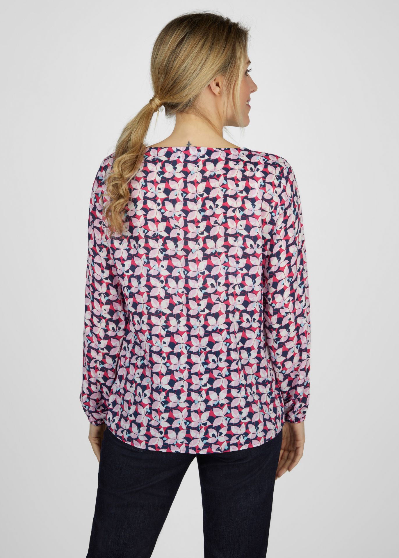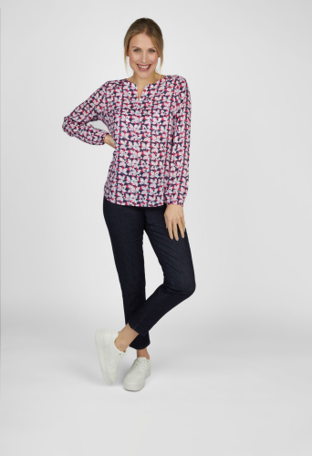 Элегантная блузка с воротником-стойкой, которая создаст неподвластный времени и шикарный образ. Блузка украшена красивым цветочным узором по всей поверхности, который придает нотку свежести и женственной утонченности. Длинные рукава обеспечивают дополнительный комфорт и стиль, а эластичные манжеты придают современный вид и обеспечивают удобную посадку. V-образный вырез тонко подчеркивает декольте и идеально дополняет общий образ. Эта блузка, изготовленная из высококачественной 100% вискозы, гарантирует вам удобную посадку и привлекательный внешний вид. Идеально подходит для разных случаев жизни: от повседневных повседневных нарядов до шикарных вечерних образов.