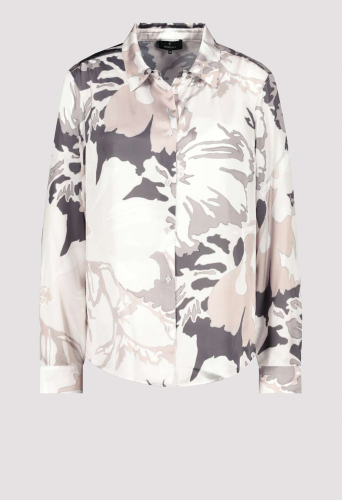 Атласная блузка с цветочным принтом впечатляет такими классическими деталями, как манжета на подоле рукава. Длина 44-го размера по спинке составляет 67 см, длина по переду - 69 см.
