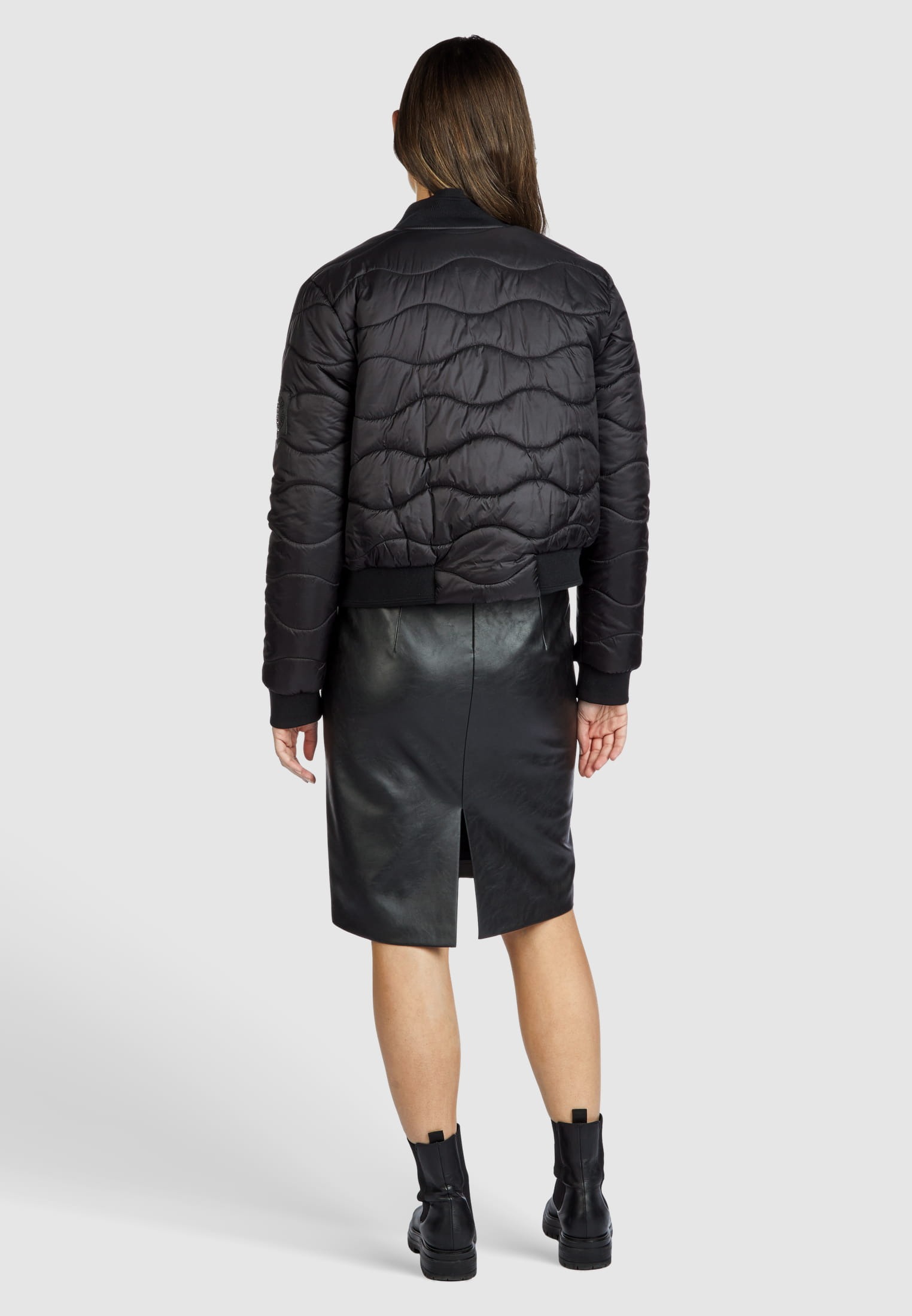Стильная юбка из искусственной кожи наппа впечатляет завышенной талией и облегающим силуэтом. Эластичная ткань и разрез по центру спинки обеспечивают комфорт и свободу движений.