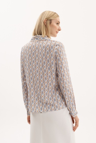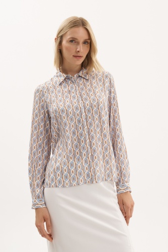 Блузка с принтом из струящегося вискозы. С разноцветным узором решетки медового/небесно-голубого/белого. Скрытые пуговицы. Длина: 64 см.