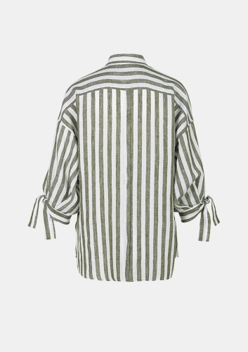 Мы предпочитаем классику и любим добавлять к ней особые штрихи, как вы можете видеть здесь, в этой мягкой, яркой льняной блузке в модном стиле блузки-рубашки. Широкий крой, слегка мешковатые рукава с модной тесьмой. Лен придает изделию естественный характер, а полоски добавляют шика.