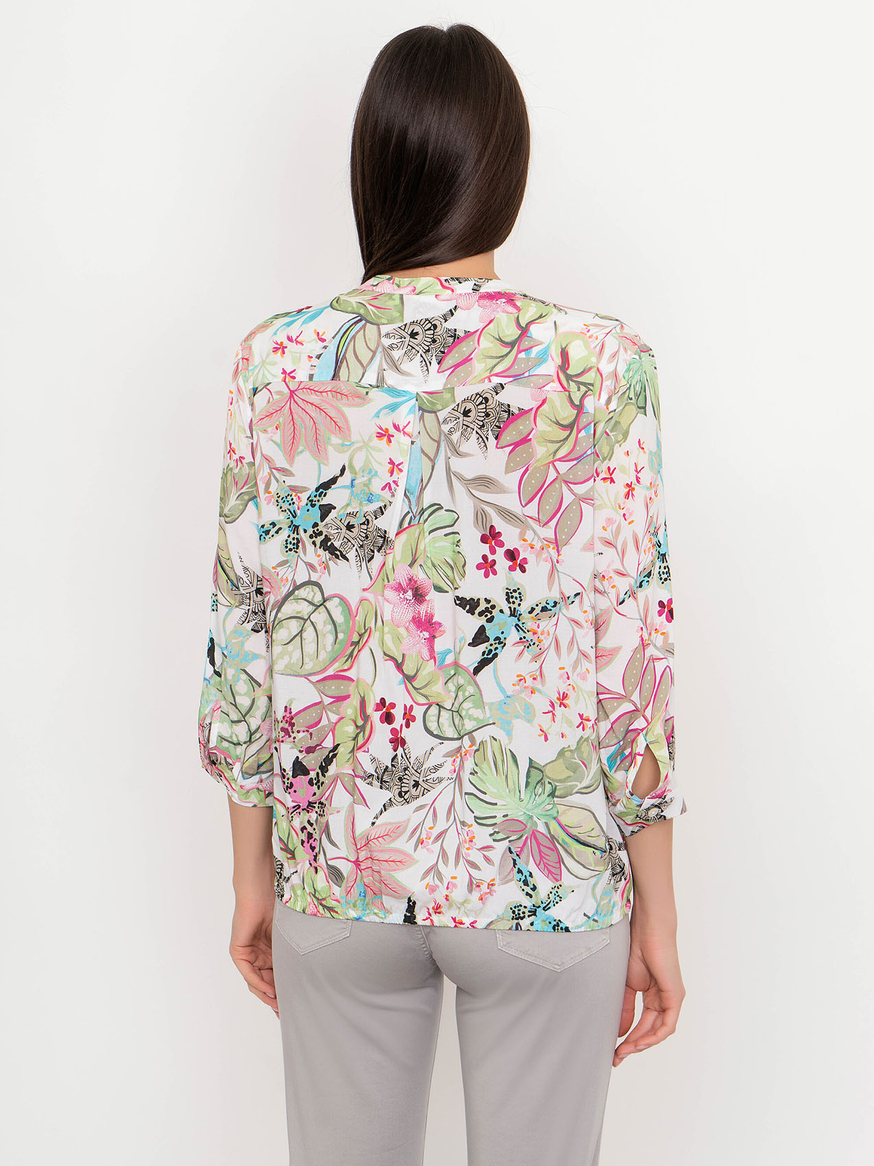Блуза с цветочным принтом создает весеннее настроение. Вискозный материал очень приятен к телу и обеспечивает максимальный комфорт. Прямой покрой гарантирует удобство движений, а рукава 3/4 придают непринужденный вид. Это универсальная и женственная модель, которая преобразит ваш гардероб!
