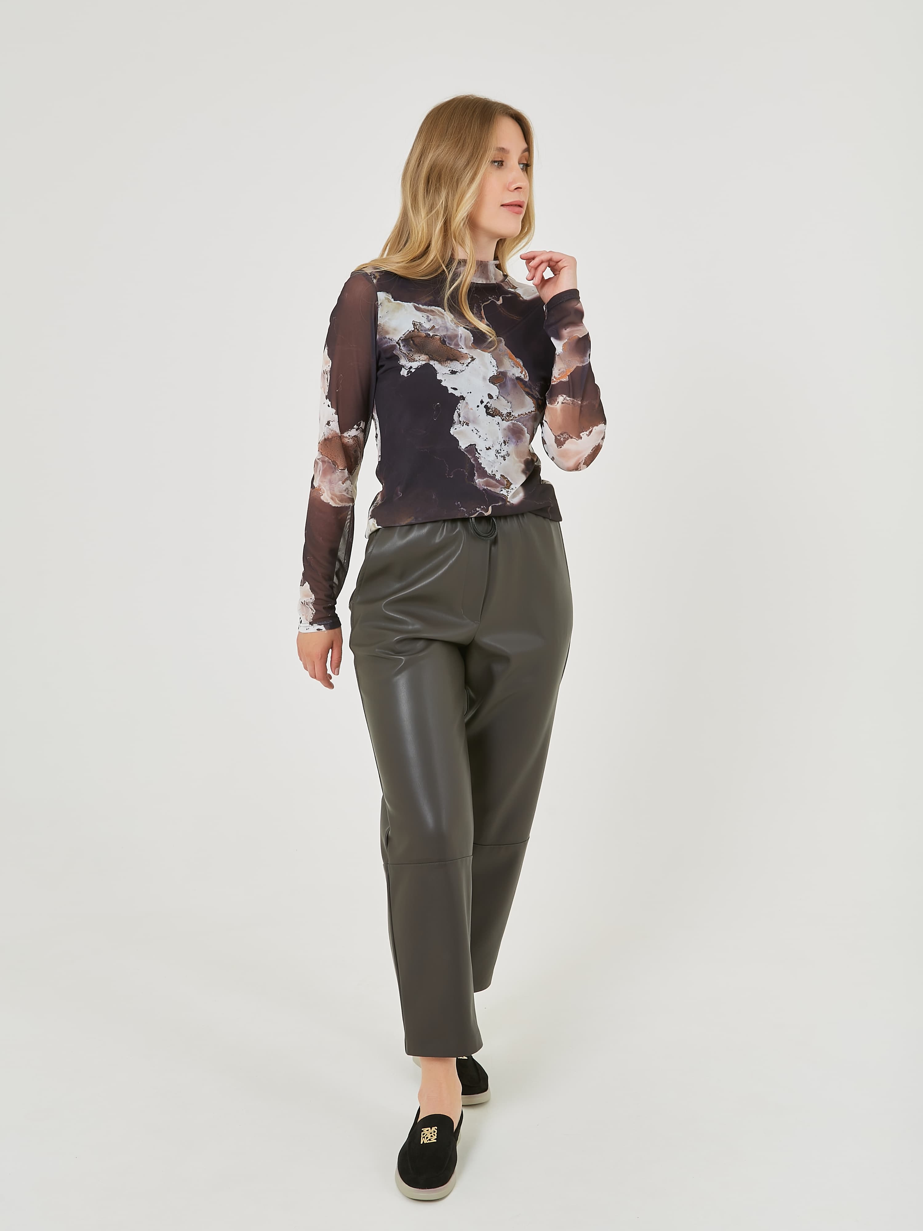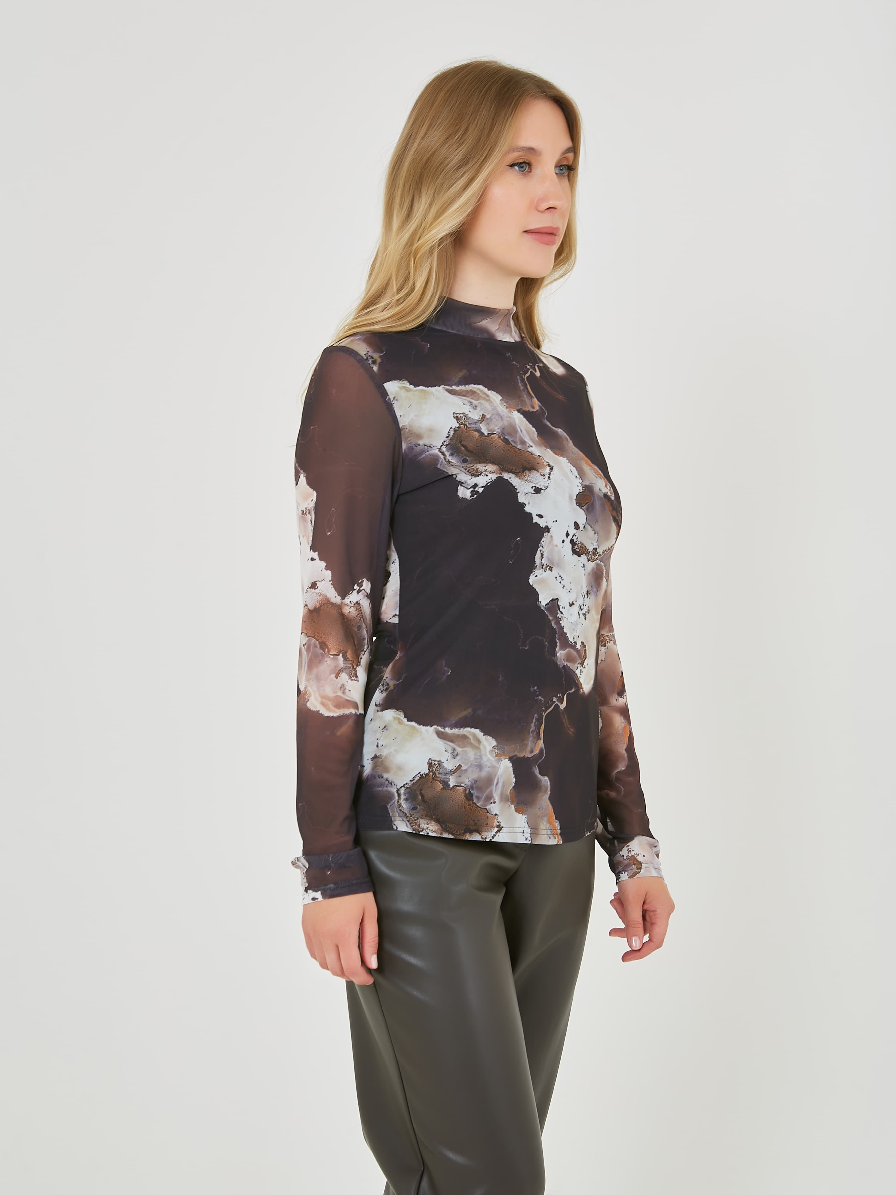Сетчатая водолазка с дымчатым принтом. Полупрозрачная фактура придаёт лёгкость и изящество. Коллекция Осень-Зима 2024-2025. Капсула "Крадущийся тигр, затаившийся дракон".