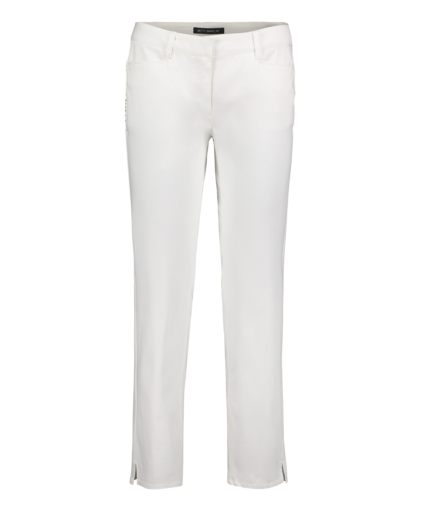 Укороченные брюки обращают на себя внимание. Универсальная средняя посадка, прямой крой. Небольшие разрезы по низу брючин. Декор стразами в области бедер придяет образу нотку гламура. Приятный к телу материал из хлопковой смеси обеспечивает комфорт в ношении. В сочетании как с футболкой, так и с блузой эти брюки создают стильный современный образ.