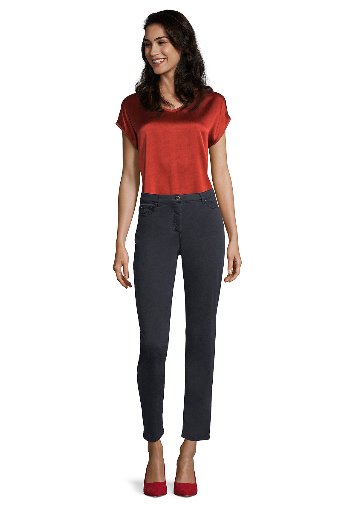 Джинсовые брюки в лаконичном дизайне. Удобная средняя посадка, силуэт slim подчеркивает стройные ноги. Материал из хлопковой смеси обеспечивает комфорт в ношении и легок в уходе. Простота модели допускает множество вариантов комбинаций для создания модных образов.