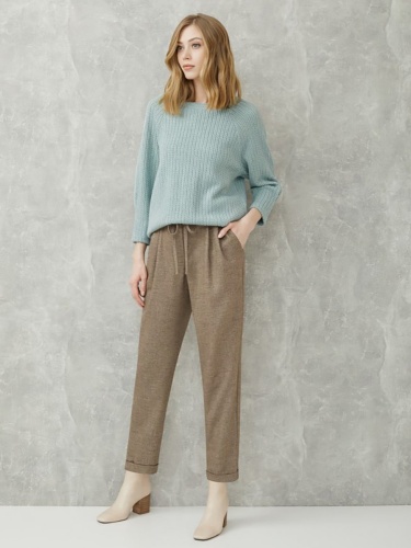 Однотонные брюки прямого кроя с отворотами. Эластичный пояс с кулиской обеспечивает комфортное ношение. Боковые врезные карманы. Брюки отлично сочетать с рубашкой из комплекта или надевать вместе с джемпером или блейзером.