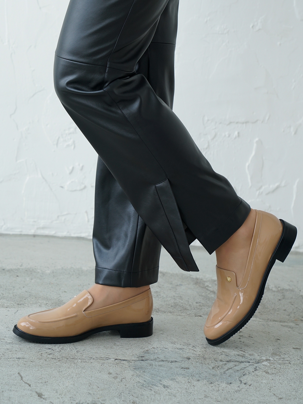 На сайте указаны российские размеры. Черные брюки из экокожи – тренд сезона! Прямой крой. Комфортная высокая посадка, широкий эластичный пояс обеспечивает удобство ношения. Боковые карманы в шве. Боковые разрезы по низу штанин. Ткань: качественная искусственная кожа (55% полиуретан, 40% поливискоза, 5% эластан). Практичный материал, загрязнения с которого легко удаляются влажной салфеткой, что особенно актуально в межсезонье. Крой: стильные брюки свободного прямого силуэта с удобным поясом-резинкой, который подчеркивает линию талии и закрывает область живота. Имеют правильный крой, благодаря чему брюки идеально садятся на разные типы фигуры. В удобных карманах в боковых швах можно легко уместить телефон и банковские карты. Отделка: модель выделяется необычной конструкцией, состоящей из двух деталей, соединенных крепкой строчкой в цвет брюк. Имеют изящные разрезы по низу, которые добавляет комфорта при передвижении, а еще позволяют носить их с различной обувью.