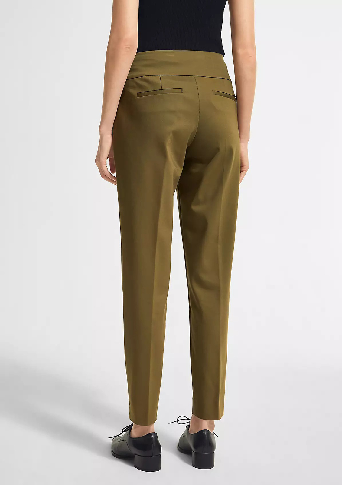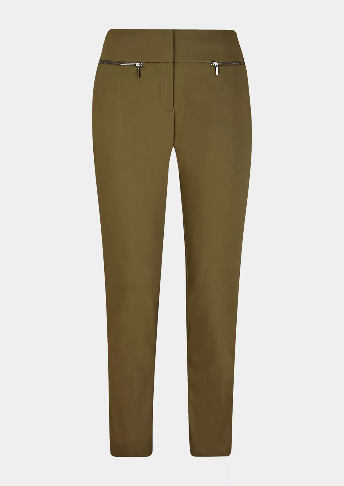 Прямые брюки со стрелками. Широкий притачной пояс без шлевок. Комфортная средняя посадка. Врезные карманы на молнии.