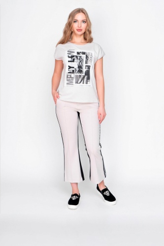 На сайте указаны Российские размеры. Брюки-клеш. Оригинальная двухцветная модель. Средняя посадка. Карманы с отрезным бочком. Длина брючин - 72 см.