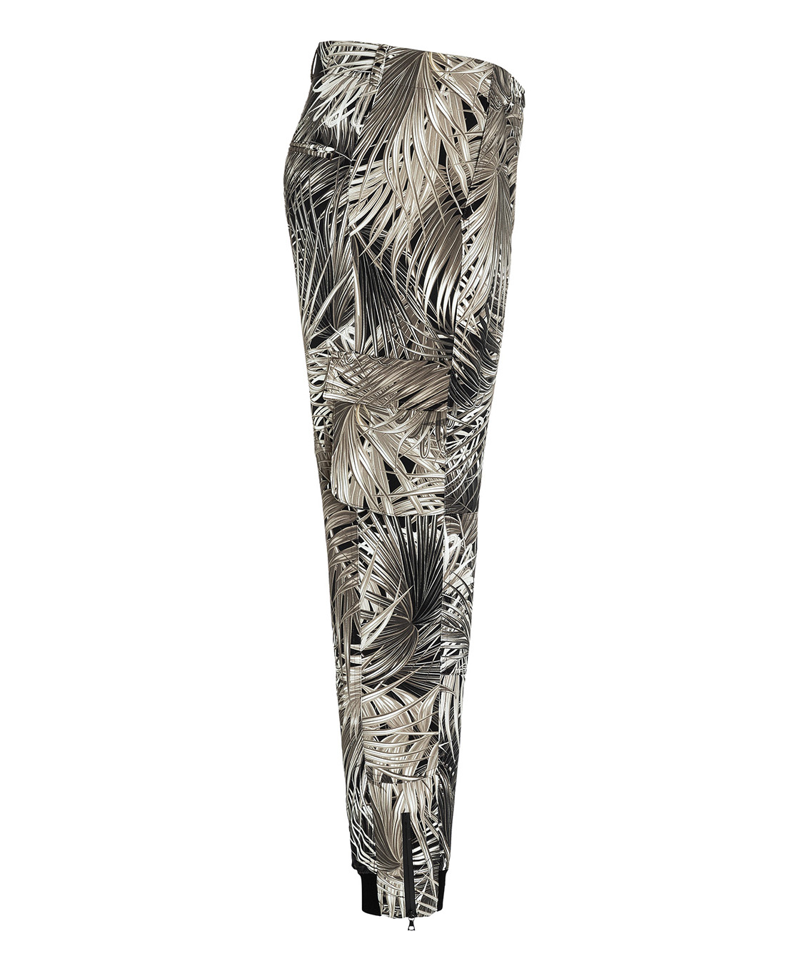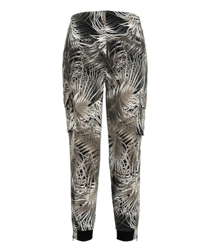 Брюки в трендовом принте с тропическими мотивами - наш модный фаворит! Зауженный книзу силуэт, средняя посадка, застежка-молния спереди, накладные карманы, манжеты и молнии по низу брючин. Эти брюки гарантируют создание актуального образа в сочетании с лаконичным вариантом верха и любой обувью.
