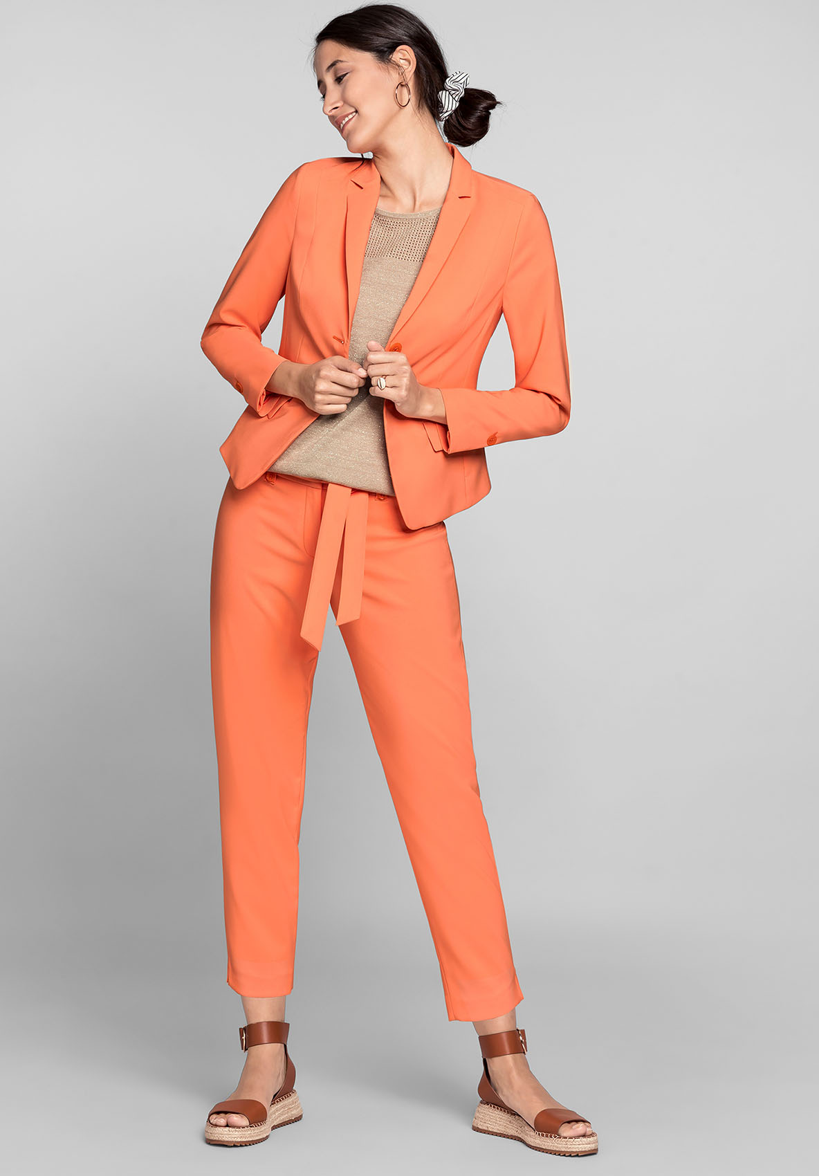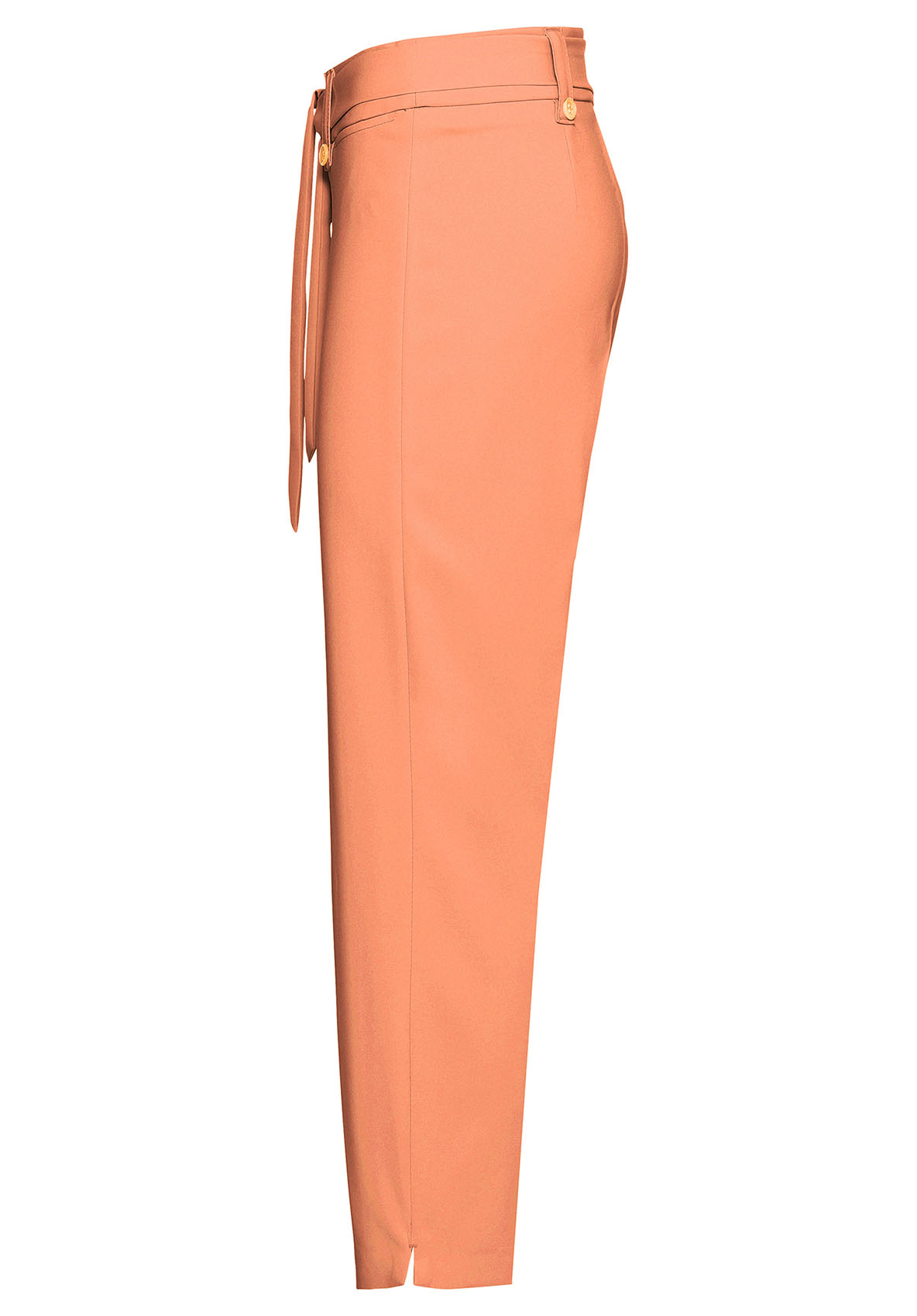 Шикарный выбор для теплого сезона. Пояс-галстук в цвет брюк создает стильный акцент. Укороченная нога и свободный силуэт обеспечивают удобную посадку. Мягкий и качественный эластичный материал. Укороченные брюки абсолютно обязательны в новом сезоне для всех модниц. Брюки прекрасно сочетаются с блузками и футболками. • в модном мандариновом цвете, с поясом-галстуком • качественный эластичный материал • свободная посадка, укороченная длина • длина около 68 см