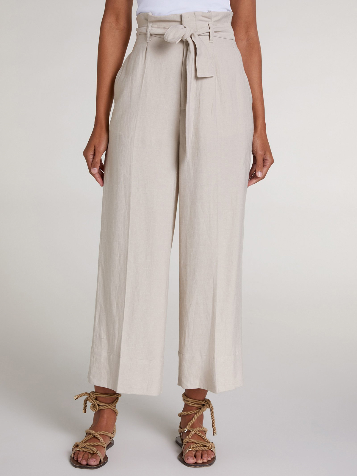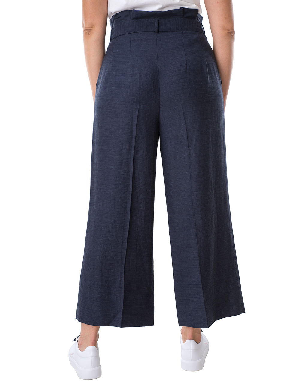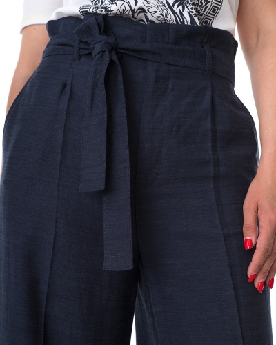 Широкие брюки в стиле кэжуал с завышенной посадкой. Свободный урой, фигурные вытачки.Материал из смеси вискозы и льна приятен к телу и обеспечивает правильную терморегуляцию. Можно сочетать с футболкой, джемпером или подходящим блейзером. Длина для размера 42: 66 см. Рост модели 176 см, на ней размер 44 (российский).