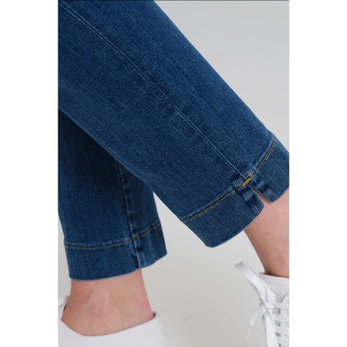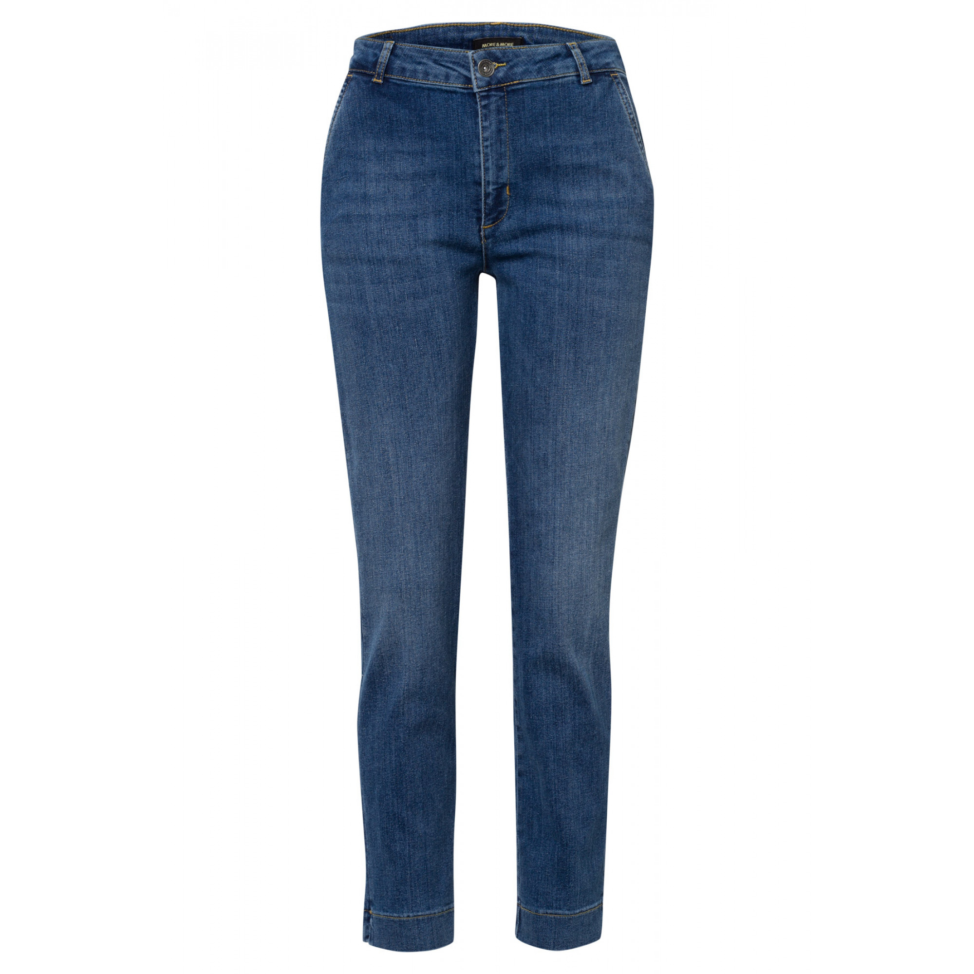 Джинсы чинос идеально сидят по фигуре и невероятно удобны благодаря эластичному материалу. На модели присутствует пояс и шлевки для ремня, косые карманы и скрытая передняя застежка. Длина внутренней стороны ноги в размере 44 = 72см