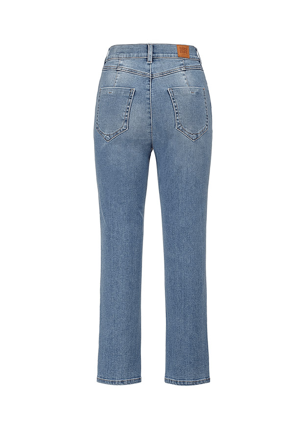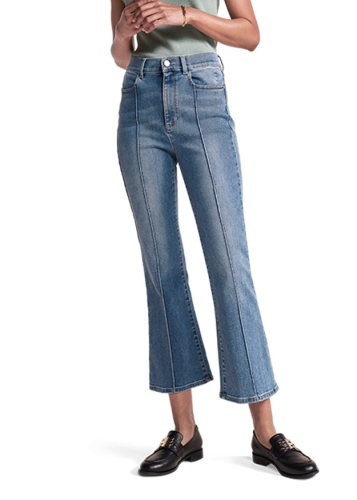 Зауженная модель, в котором штанины слегка расклешены. Стильность джинс добавляет центральный шов.