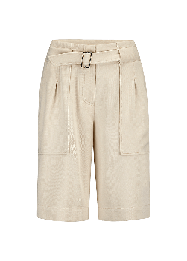 Шорты-бермуды из прочного твила. Большие накладные карманы спереди, узкие карманы с клапанами сзади. Модель прямого кроя с тканевым ремнём.