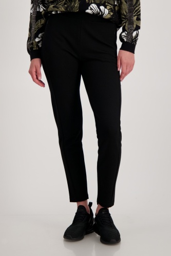 На сайте указаны российские размеры. Джеггинсы с карманами черного цвета из эластичной ткани с ребристым дизайном. Разделительные швы и карманы в боковых швах на молнии завершают модель. Рост модели 178 см Длина по внутреннему шву 72 см.
