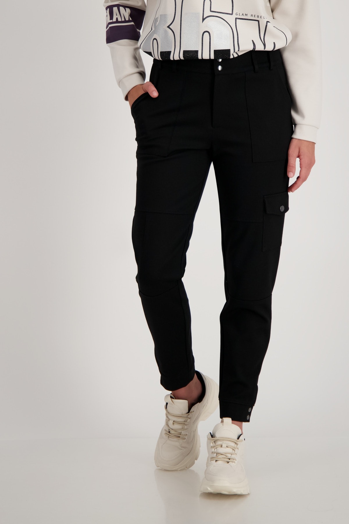 На сайте указаны российские размеры. Брюки в стиле джоггер от monari сочетают в себе непринужденный стильный дизайн и высокую функциональность. Удобная эластичная ткань гарантирует оптимальную посадку и максимальную свободу движений, а мягкая вискозная ткань, смешанная с полиамидом, особенно удобна. Накладные карманы спереди, большой карман с клапаном на кнопке на уровне колена и фальшивые прорезные карманы сзади незаметно выделяются красивыми продольными и поперечными разделительными швами спереди и придают модели изюминку. Рост модели 175 см Длина по внутреннему шву 68 см.