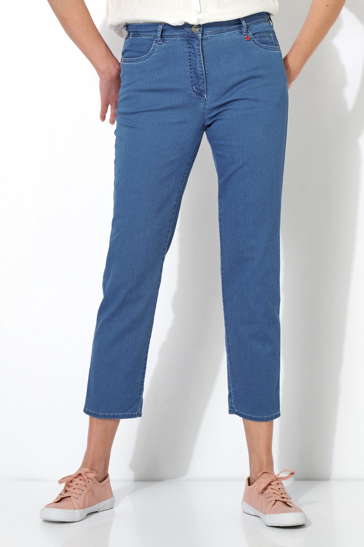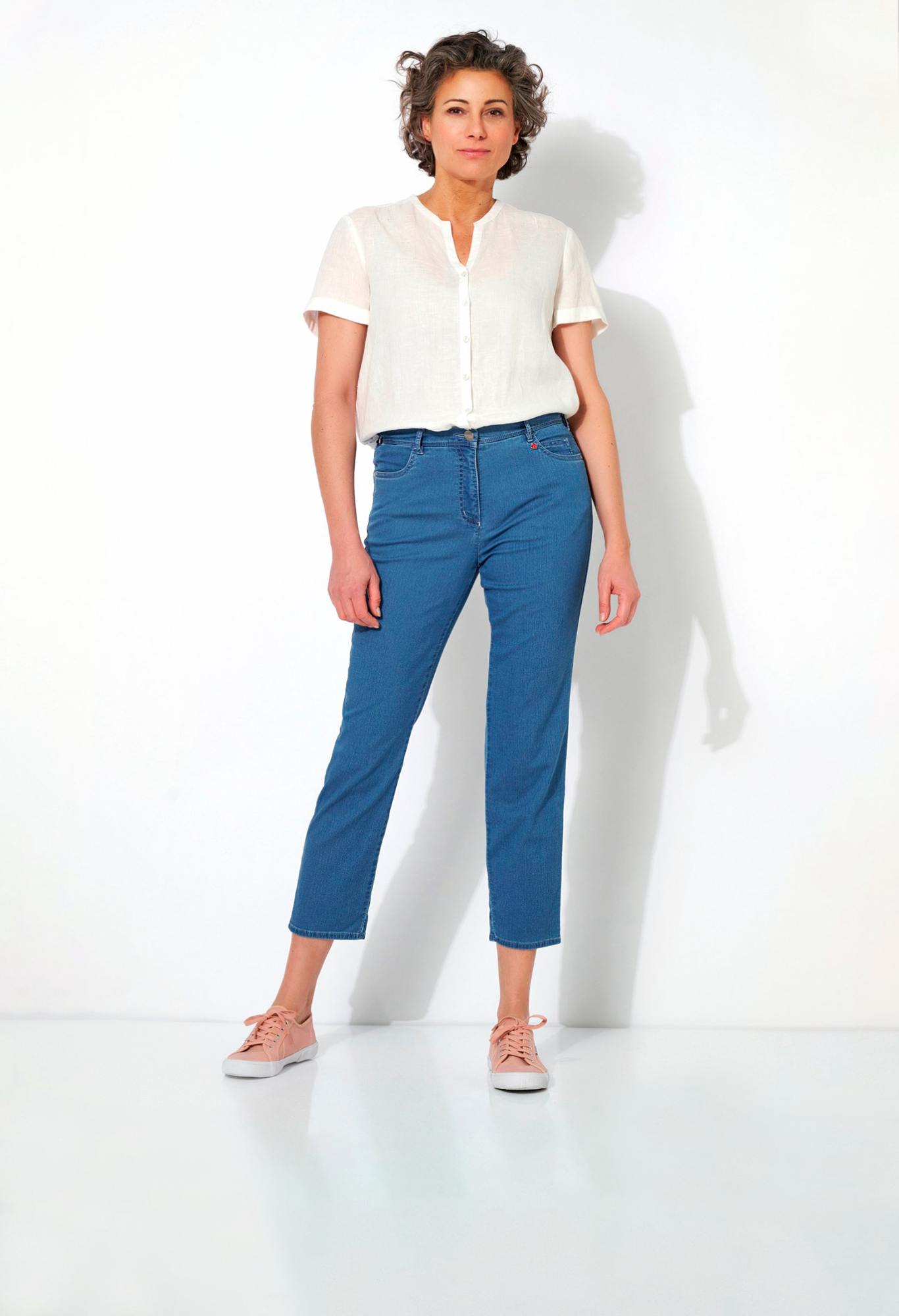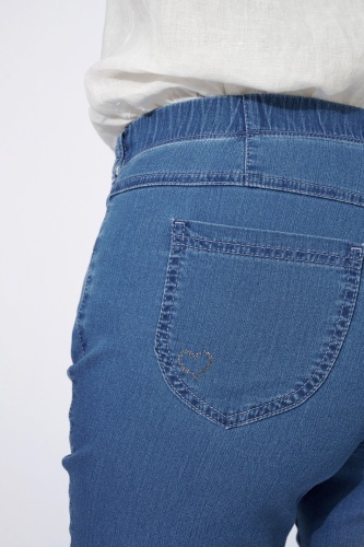 На сайте указаны российские размеры. Повседневные джинсы с пятью карманами из легкого эластичного хлопка с невидимой резинкой, аппликацией в виде сердца на заднем кармане и свободной посадкой. Длина по внутреннему шву: 72 см. Рост модели 180 см.