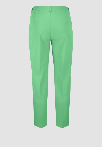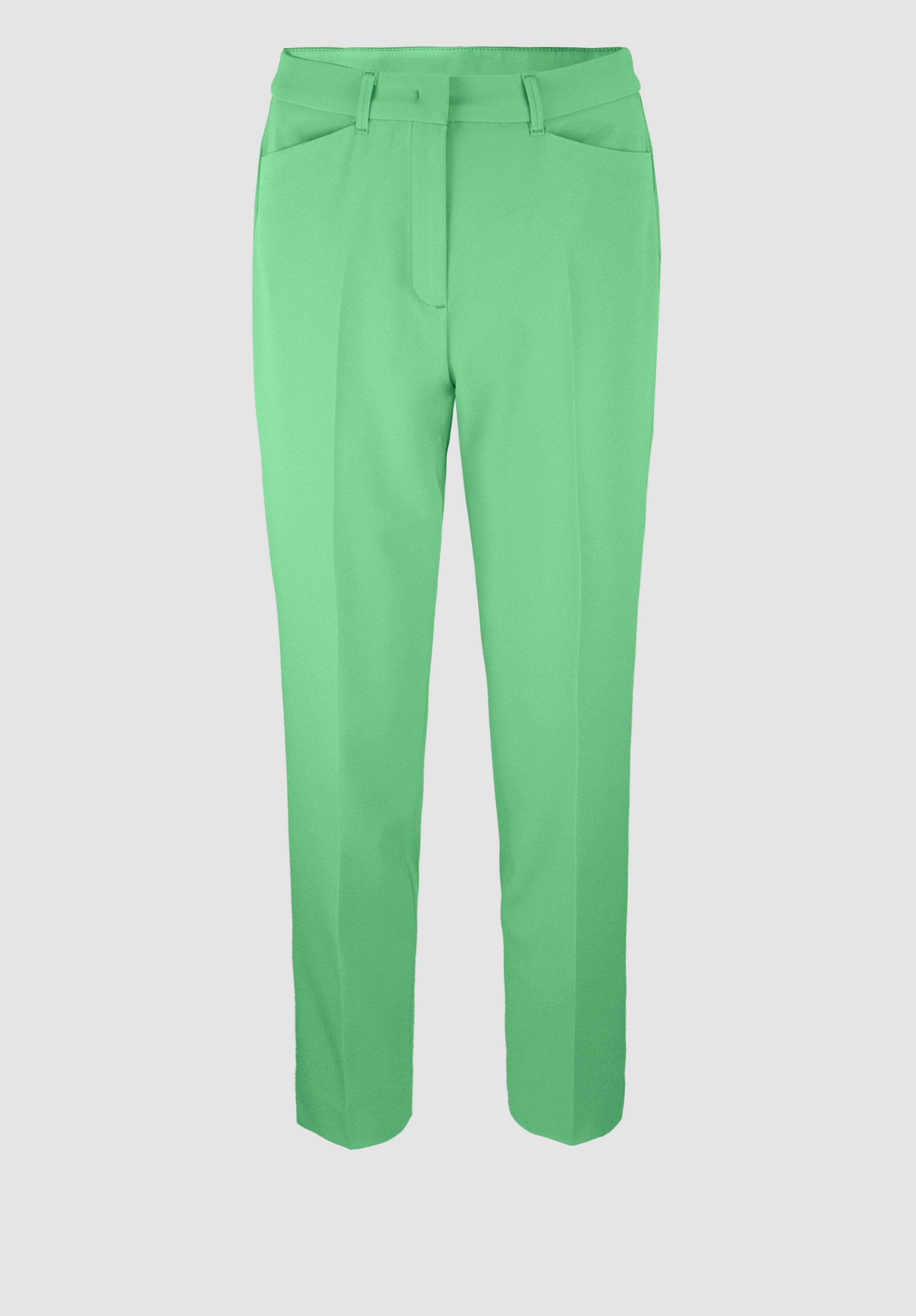 На сайте указаны российские размеры. Модные стрейчевые брюки. Благодаря высококачественному материалу с эластичным эластаном и застежке на крючок спереди она невероятно удобна. Передние карманы в сочетании со складкой и небольшими разрезами по низу завершают повседневный образ укороченных брюк прямого кроя. Длина в размере 44 около 68 см.