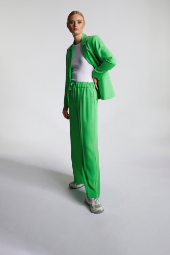 Свободные брюки с широкими штанинами создают повседневный образ. Модель сделана из мягкого, струящегося, устойчивого материала, а элегантно прошитая складка делает их подходящим для бизнеса. В то время как эластичный пояс со шнуром придает спортивный вид. Карманы завершают дизайн. Длина в размере 42: 78 см.